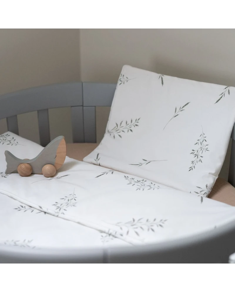 La nostra biancheria, ispirata al paesaggio e al fascino della campagna polacca, non è solo bella da vedere, ma anche realizzata con la massima cura. Il set, in 100% cotone premium, è morbidissimo al tatto e perfetto per la pelle delicata dei neonati. L’imbottitura in fibra di silicone è anallergica, traspirante e non trattiene l’umidità – il segreto per un sonno più confortevole e rilassante. Comfort e sicurezza vanno sempre insieme!