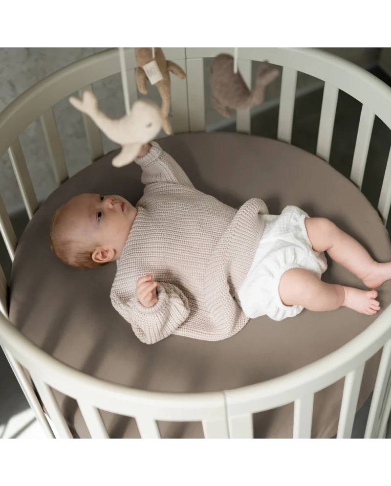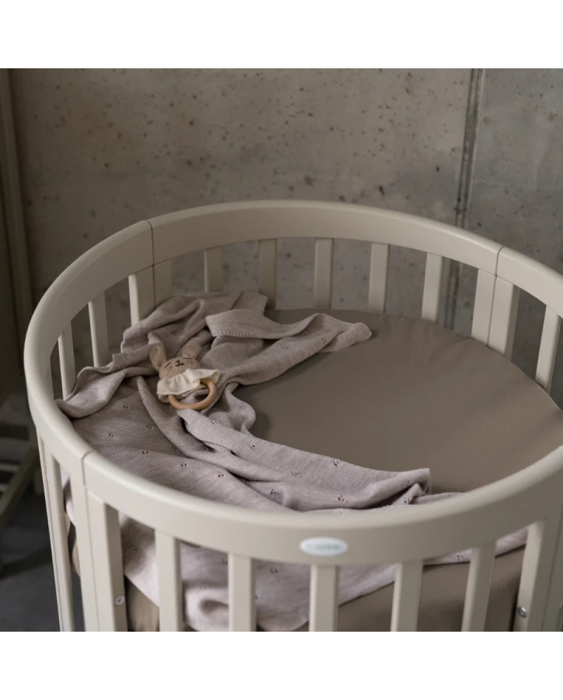 Lenzuolo con angoli morbido e sicuro, realizzato in cotone biologico, perfettamente adatto ai piccoli lettini ovali 7-in-1.
